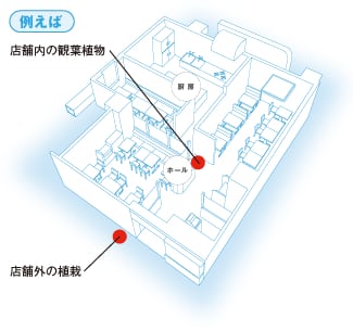 店舗内外の植栽を食害する害虫や、植栽についた害虫を人が触ったりすることで被害を受けます。
